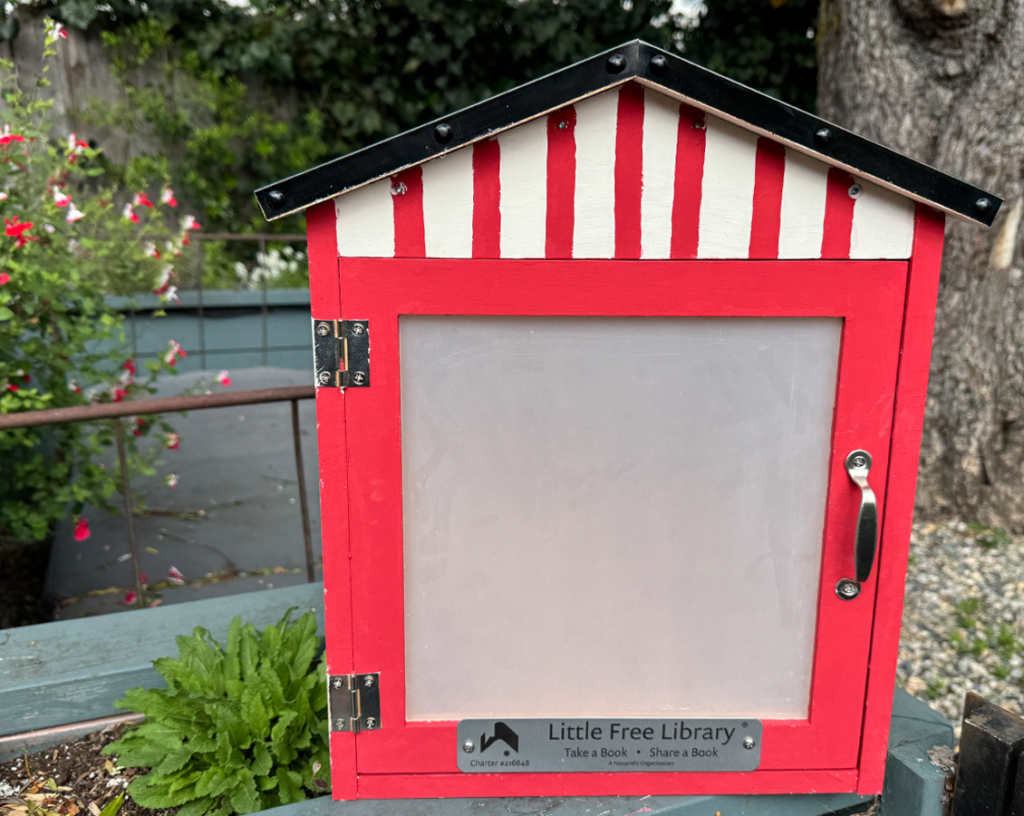 When we looked at our physical library and all the wonderful books just sitting there, knowing we wanted to get them out into our greater communities, the “Little Free Library” spoke to us.